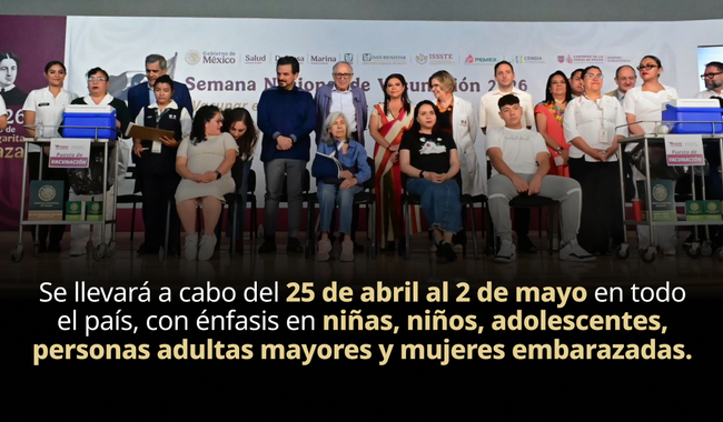 La Secretaría de Salud dio inicio a la Semana Nacional de Vacunación 2026 en la Ciudad de México, en un evento encabezado por el secretario de Salud, David Kershenobich, y la jefa de Gobierno, Clara Brugada.